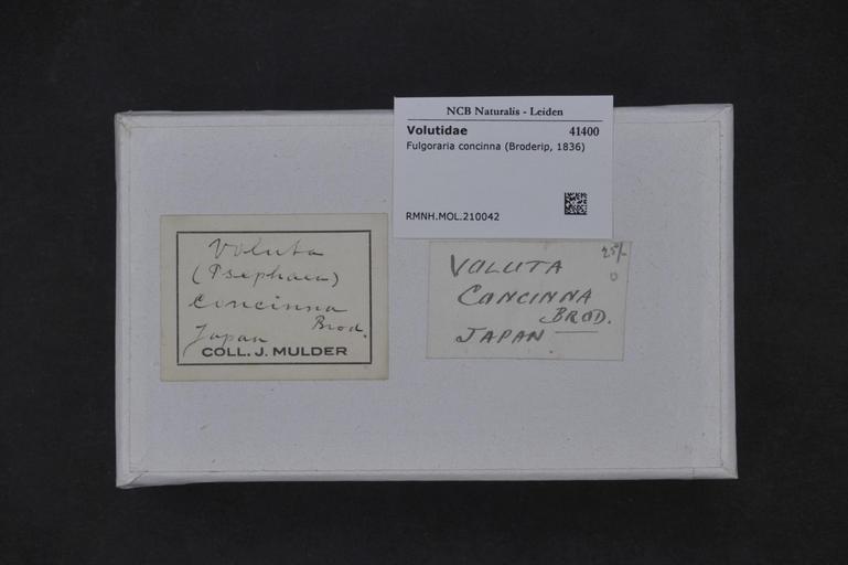 Keywords: Naturalis Biodiversity Center - RMNH.MOL.210042 1 - Fulgoraria concinna (Broderip, 1836) - Volutidae - Mollusc shell.jpeg artwork Dimensions artwork Document type Volutidae Fulgoraria Individual count Infraspecific epithet Infraspecific rank Institution Naturalis Kind of unit artwork Kind of unit specimen shell Life stage Medium artwork Nomenclatural code Source institute Rijksmuseum van Natuurlijke Historie Leiden Scale the width of the text on the species/QR-code label is 38 mm Occurrence ID page Neogastropoda Other fields Other versions artwork Permission license Naturalis donation CC-0 Mollusca Publication location Scientific name Fulgoraria concinna Broderip 1836 Scientific name authorship Broderip 1836 Source url http //bioportal naturalis nl Specific epithet concinna State or province Subject keywords artwork Subject keywords publication Title artwork Title publication Type status Uploaded with GWToolset Naturalis_Biodiversity_Center_-_RMNH MOL 210042_1_-_Fulgoraria_concinna_ Broderip _1836 _-_Volutidae_-_Mollusc_shell http //medialib naturalis nl/file/id/RMNH MOL 210042_1/format/large Media donated by Naturalis Biodiversity Center Molluscs at Naturalis from the Rijksmuseum van Natuurlijke Historie Fulgoraria concinna Fulgoraria |