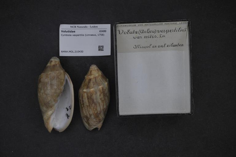 Keywords: Naturalis Biodiversity Center - RMNH.MOL.210430 - Cymbiola vespertilio Linnaeus, 1758 - Volutidae - Mollusc shell.jpeg artwork Dimensions artwork Document type Volutidae Cymbiola Individual count Infraspecific epithet Infraspecific rank Institution Naturalis Kind of unit artwork Kind of unit specimen shell Life stage Medium artwork Nomenclatural code Source institute Rijksmuseum van Natuurlijke Historie Leiden Scale the width of the text on the species/QR-code label is 38 mm Occurrence ID page Neogastropoda Other fields Other versions artwork Permission license Naturalis donation CC-0 Mollusca Publication location Scientific name Cymbiola vespertilio Linnaeus 1758 Scientific name authorship Linnaeus 1758 Source url http //bioportal naturalis nl Specific epithet vespertilio State or province Subject keywords artwork Subject keywords publication Title artwork Title publication Type status Uploaded with GWToolset Naturalis_Biodiversity_Center_-_RMNH MOL 210430_-_Cymbiola_vespertilio_Linnaeus _1758_-_Volutidae_-_Mollusc_shell http //medialib naturalis nl/file/id/RMNH MOL 210430/format/large Media donated by Naturalis Biodiversity Center Molluscs at Naturalis from the Rijksmuseum van Natuurlijke Historie Cymbiola vespertilio Cymbiola |