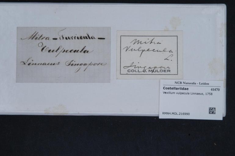 | Keywords: Naturalis Biodiversity Center - RMNH.MOL.216990 1 - Vexillum vulpecula (Linnaeus, 1758) - Costellariidae - Mollusc shell.jpeg artwork Dimensions artwork Document type Costellariidae Vexillum Individual count Infraspecific epithet Infraspecific rank Institution Naturalis Kind of unit artwork Kind of unit specimen shell Life stage Medium artwork Nomenclatural code Source institute Rijksmuseum van Natuurlijke Historie Leiden Scale the width of the text on the species/QR-code label is 38 mm Occurrence ID page Neogastropoda Other fields Other versions artwork Permission license Naturalis donation CC-0 Mollusca Publication location Scientific name Vexillum vulpecula Linnaeus 1758 Scientific name authorship Linnaeus 1758 Source url http //bioportal naturalis nl Specific epithet vulpecula State or province Subject keywords artwork Subject keywords publication Title artwork Title publication Type status Uploaded with GWToolset Naturalis_Biodiversity_Center_-_RMNH MOL 216990_1_-_Vexillum_vulpecula_ Linnaeus _1758 _-_Costellariidae_-_Mollusc_shell http //medialib naturalis nl/file/id/RMNH MOL 216990_1/format/large Molluscs at Naturalis from the Rijksmuseum van Natuurlijke Historie Media donated by Naturalis Biodiversity Center Vexillum vulpecula Vexillum |