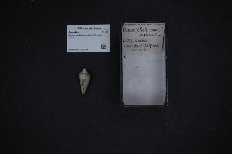 Keywords: Naturalis Biodiversity Center - RMNH.MOL.221706 - Conus gradatulus patens Sowerby, 1903 - Conidae - Mollusc shell.jpeg artwork Dimensions artwork Document type Conidae Conus Individual count Infraspecific epithet patens Infraspecific rank Institution Naturalis Kind of unit artwork Kind of unit specimen shell Life stage Medium artwork Nomenclatural code Source institute Rijksmuseum van Natuurlijke Historie Leiden Scale the width of the text on the species/QR-code label is 38 mm Occurrence ID page Other fields Other versions artwork Permission license Naturalis donation CC-0 Mollusca Publication location Scientific name Conus gradatulus patens Sowerby 1903 Scientific name authorship Sowerby 1903 Source url http //bioportal naturalis nl Specific epithet gradatulus State or province Subject keywords artwork Subject keywords publication Title artwork Title publication Type status Uploaded with GWToolset Naturalis_Biodiversity_Center_-_RMNH MOL 221706_-_Conus_gradatulus_patens_Sowerby _1903_-_Conidae_-_Mollusc_shell http //medialib naturalis nl/file/id/RMNH MOL 221706/format/large Molluscs at Naturalis from the Rijksmuseum van Natuurlijke Historie Media donated by Naturalis Biodiversity Center Conus gradatulus Conus |