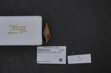 Keywords: Naturalis Biodiversity Center - RMNH.MOL.226133 1 - Daphnella concinna (Dunker, 1857) - Raphitomidae - Mollusc shell.jpeg artwork Dimensions artwork Document type Raphitomidae Daphnella Individual count Infraspecific epithet Infraspecific rank Institution Naturalis Kind of unit artwork Kind of unit specimen shell Life stage Medium artwork Nomenclatural code Source institute Rijksmuseum van Natuurlijke Historie Leiden Scale the width of the text on the species/QR-code label is 38 mm Occurrence ID page Other fields Other versions artwork Permission license Naturalis donation CC-0 Mollusca Publication location Scientific name Daphnella concinna Dunker 1857 Scientific name authorship Dunker 1857 Source url http //bioportal naturalis nl Specific epithet concinna State or province Subject keywords artwork Subject keywords publication Title artwork Title publication Type status Uploaded with GWToolset Naturalis_Biodiversity_Center_-_RMNH MOL 226133_1_-_Daphnella_concinna_ Dunker _1857 _-_Raphitomidae_-_Mollusc_shell http //medialib naturalis nl/file/id/RMNH MOL 226133_1/format/large Molluscs at Naturalis from the Rijksmuseum van Natuurlijke Historie Media donated by Naturalis Biodiversity Center Daphnella concinna Daphnella |