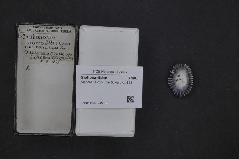 Keywords: Naturalis Biodiversity Center - RMNH.MOL.235833 - Siphonaria concinna Sowerby, 1823 - Siphonariidae - Mollusc shell.jpeg artwork Dimensions artwork Document type Siphonariidae Siphonaria Individual count Infraspecific epithet Infraspecific rank Institution Naturalis Kind of unit artwork Kind of unit specimen shell Life stage Medium artwork Nomenclatural code Source institute Rijksmuseum van Natuurlijke Historie Leiden Scale the width of the text on the species/QR-code label is 38 mm Occurrence ID page Other fields Other versions artwork Permission license Naturalis donation CC-0 Mollusca Publication location Scientific name Siphonaria concinna Sowerby 1823 Scientific name authorship Sowerby 1823 Source url http //bioportal naturalis nl Specific epithet concinna State or province Subject keywords artwork Subject keywords publication Title artwork Title publication Type status Uploaded with GWToolset Naturalis_Biodiversity_Center_-_RMNH MOL 235833_-_Siphonaria_concinna_Sowerby _1823_-_Siphonariidae_-_Mollusc_shell http //medialib naturalis nl/file/id/RMNH MOL 235833/format/large Molluscs at Naturalis from the Rijksmuseum van Natuurlijke Historie Media donated by Naturalis Biodiversity Center Siphonaria concinna Siphonaria |