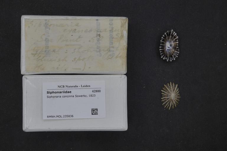 Keywords: Naturalis Biodiversity Center - RMNH.MOL.235836 1 - Siphonaria concinna Sowerby, 1823 - Siphonariidae - Mollusc shell.jpeg artwork Dimensions artwork Document type Siphonariidae Siphonaria Individual count Infraspecific epithet Infraspecific rank Institution Naturalis Kind of unit artwork Kind of unit specimen shell Life stage Medium artwork Nomenclatural code Source institute Rijksmuseum van Natuurlijke Historie Leiden Scale the width of the text on the species/QR-code label is 38 mm Occurrence ID page Other fields Other versions artwork Permission license Naturalis donation CC-0 Mollusca Publication location Scientific name Siphonaria concinna Sowerby 1823 Scientific name authorship Sowerby 1823 Source url http //bioportal naturalis nl Specific epithet concinna State or province Subject keywords artwork Subject keywords publication Title artwork Title publication Type status Uploaded with GWToolset Naturalis_Biodiversity_Center_-_RMNH MOL 235836_1_-_Siphonaria_concinna_Sowerby _1823_-_Siphonariidae_-_Mollusc_shell http //medialib naturalis nl/file/id/RMNH MOL 235836_1/format/large Molluscs at Naturalis from the Rijksmuseum van Natuurlijke Historie Media donated by Naturalis Biodiversity Center Siphonaria concinna Siphonaria |