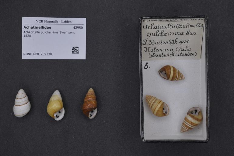 | Keywords: Naturalis Biodiversity Center - RMNH.MOL.239130 - Achatinella pulcherrima Swainson, 1828 - Achatinellidae - Mollusc shell.jpeg  artwork Dimensions artwork Document type Achatinellidae subfamily Achatinellinae Achatinella Individual count Infraspecific epithet Infraspecific rank Institution Naturalis Kind of unit artwork Kind of unit specimen shell Life stage Medium artwork Nomenclatural code Source institute Rijksmuseum van Natuurlijke Historie Leiden Scale the width of the text on the species/QR-code label is 38 mm Occurrence ID page Other fields Other versions artwork Permission license Naturalis donation CC-0 Mollusca Publication location Scientific name Achatinella pulcherrima Swainson 1828 Scientific name authorship Source url http //bioportal naturalis nl Specific epithet pulcherrima State or province Subject keywords artwork Subject keywords publication Title artwork Title publication Type status Uploaded with GWToolset Naturalis_Biodiversity_Center_-_RMNH MOL 239130_-_Achatinella_pulcherrima_Swainson _1828_-_Achatinellidae_-_Mollusc_shell http //medialib naturalis nl/file/id/RMNH MOL 239130/format/large Molluscs at Naturalis from the Rijksmuseum van Natuurlijke Historie Media donated by Naturalis Biodiversity Center Achatinella pulcherrima Achatinella |