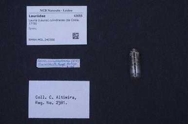 | Keywords: Naturalis Biodiversity Center - RMNH.MOL.240366 - Lauria (Lauria) cylindracea (Da Costa, 1778) - Lauriidae - Mollusc shell.jpeg  artwork Dimensions artwork Document type Lauriidae Lauria Individual count Infraspecific epithet Infraspecific rank Institution Naturalis Kind of unit artwork Kind of unit specimen shell Life stage Spain Medium artwork Nomenclatural code Source institute Rijksmuseum van Natuurlijke Historie Leiden Scale the width of the text on the species/QR-code label is 38 mm Occurrence ID page Other fields Other versions artwork Permission license Naturalis donation CC-0 Mollusca Publication location Scientific name Lauria Lauria cylindracea Da Costa 1778 Scientific name authorship Da Costa 1778 Source url http //bioportal naturalis nl Specific epithet cylindracea State or province Subject keywords artwork Subject keywords publication Title artwork Title publication Type status Uploaded with GWToolset Naturalis_Biodiversity_Center_-_RMNH MOL 240366_-_Lauria_ Lauria _cylindracea_ Da_Costa _1778 _-_Lauriidae_-_Mollusc_shell http //medialib naturalis nl/file/id/RMNH MOL 240366/format/large Molluscs at Naturalis from the Rijksmuseum van Natuurlijke Historie Media donated by Naturalis Biodiversity Center Lauria cylindracea Lauria |