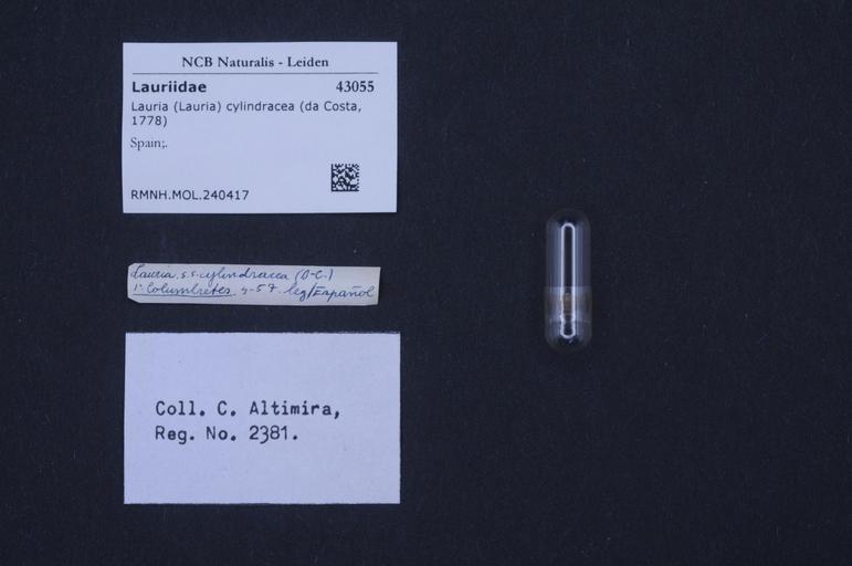 | Keywords: Naturalis Biodiversity Center - RMNH.MOL.240417 - Lauria (Lauria) cylindracea (Da Costa, 1778) - Lauriidae - Mollusc shell.jpeg  artwork Dimensions artwork Document type Lauriidae Lauria Individual count Infraspecific epithet Infraspecific rank Institution Naturalis Kind of unit artwork Kind of unit specimen shell Life stage Spain Medium artwork Nomenclatural code Source institute Rijksmuseum van Natuurlijke Historie Leiden Scale the width of the text on the species/QR-code label is 38 mm Occurrence ID page Other fields Other versions artwork Permission license Naturalis donation CC-0 Mollusca Publication location Scientific name Lauria Lauria cylindracea Da Costa 1778 Scientific name authorship Da Costa 1778 Source url http //bioportal naturalis nl Specific epithet cylindracea State or province Subject keywords artwork Subject keywords publication Title artwork Title publication Type status Uploaded with GWToolset Naturalis_Biodiversity_Center_-_RMNH MOL 240417_-_Lauria_ Lauria _cylindracea_ Da_Costa _1778 _-_Lauriidae_-_Mollusc_shell http //medialib naturalis nl/file/id/RMNH MOL 240417/format/large Molluscs at Naturalis from the Rijksmuseum van Natuurlijke Historie Media donated by Naturalis Biodiversity Center Lauria cylindracea Lauria |