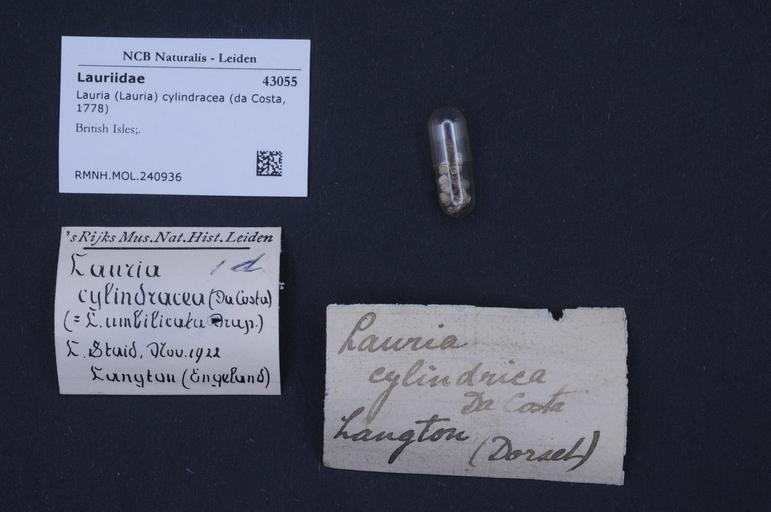 | Keywords: Naturalis Biodiversity Center - RMNH.MOL.240936 - Lauria (Lauria) cylindracea (Da Costa, 1778) - Lauriidae - Mollusc shell.jpeg  artwork Dimensions artwork Document type Lauriidae Lauria Individual count Infraspecific epithet Infraspecific rank Institution Naturalis Kind of unit artwork Kind of unit specimen shell Life stage British Isles Medium artwork Nomenclatural code Source institute Rijksmuseum van Natuurlijke Historie Leiden Scale the width of the text on the species/QR-code label is 38 mm Occurrence ID page Other fields Other versions artwork Permission license Naturalis donation CC-0 Mollusca Publication location Scientific name Lauria Lauria cylindracea Da Costa 1778 Scientific name authorship Da Costa 1778 Source url http //bioportal naturalis nl Specific epithet cylindracea State or province Subject keywords artwork Subject keywords publication Title artwork Title publication Type status Uploaded with GWToolset Naturalis_Biodiversity_Center_-_RMNH MOL 240936_-_Lauria_ Lauria _cylindracea_ Da_Costa _1778 _-_Lauriidae_-_Mollusc_shell http //medialib naturalis nl/file/id/RMNH MOL 240936/format/large Molluscs at Naturalis from the Rijksmuseum van Natuurlijke Historie Media donated by Naturalis Biodiversity Center Lauria cylindracea Lauria |