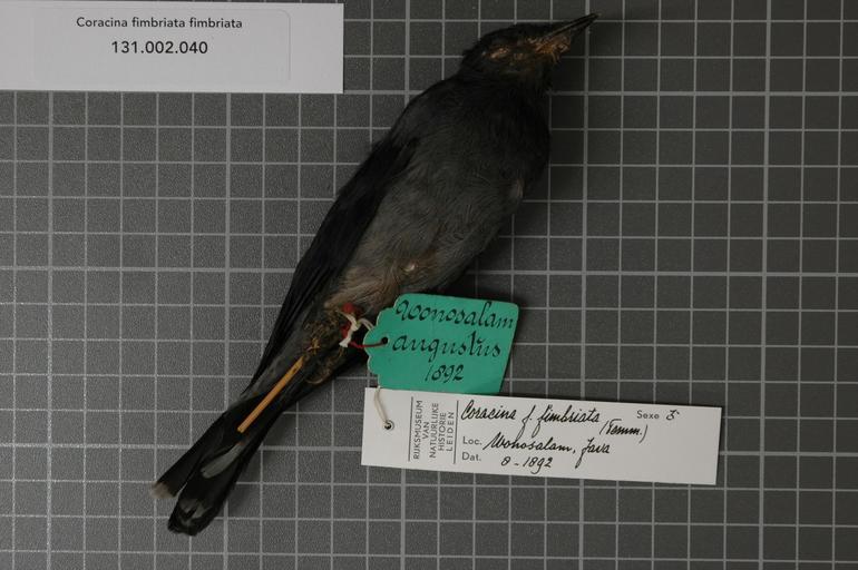 | Keywords: Naturalis Biodiversity Center - RMNH.AVES.123835 1 - Coracina fimbriata fimbriata (Temminck, 1824) - Campephagidae - bird skin specimen.jpeg artwork Dimensions artwork Document type Campephagidae Coracina Individual count 1 Infraspecific epithet fimbriata Infraspecific rank Institution Naturalis Kind of unit artwork Kind of unit specimen skin Life stage Indonesia Java Wonosalem Medium artwork Nomenclatural code Occurrence ID page Other fields Other versions artwork Permission license Naturalis donation CC-0 Publication location Scientific name Coracina fimbriata fimbriata Temminck 1824 Scientific name authorship Temminck 1824 male Source url http //bioportal naturalis nl Specific epithet fimbriata State or province Subject keywords artwork Subject keywords publication Title artwork Title publication Type status Uploaded with GWToolset Naturalis_Biodiversity_Center_-_RMNH AVES 123835_1_-_Coracina_fimbriata_fimbriata_ Temminck _1824 _-_Campephagidae_-_bird_skin_specimen http //medialib naturalis nl/file/id/RMNH AVES 123835_1/format/large Media donated by Naturalis Biodiversity Center Songbird specimens at Naturalis Biodiversity Center Coracina fimbriata fimbriata |