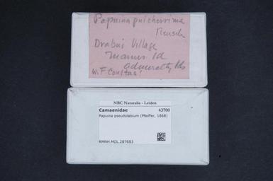 | Keywords: Naturalis Biodiversity Center - RMNH.MOL.287683 1 - Papustyla pulcherrima (Rensch, 1931) - Camaenidae - Mollusc shell.jpeg  artwork Dimensions artwork Document type Camaenidae subfamily Papuininae Papustyla Individual count Infraspecific epithet Infraspecific rank Institution Naturalis Kind of unit artwork Kind of unit specimen shell Life stage Medium artwork Nomenclatural code Source institute Rijksmuseum van Natuurlijke Historie Leiden Scale the width of the text on the species/QR-code label is 38 mm Occurrence ID page Other fields Other versions artwork Permission license Naturalis donation CC-0 Mollusca Publication location Scientific name Papustyla pulcherrima Rensch 1931 Scientific name authorship Rensch 1931 Source url http //bioportal naturalis nl Specific epithet pulcherrima State or province Subject keywords artwork Subject keywords publication Title artwork Title publication Type status Uploaded with GWToolset Naturalis_Biodiversity_Center_-_RMNH MOL 287683_1_-_Papustyla_pulcherrima_ Rensch _1931 _-_Camaenidae_-_Mollusc_shell http //medialib naturalis nl/file/id/RMNH MOL 287683_1/format/large Molluscs at Naturalis from the Rijksmuseum van Natuurlijke Historie Media donated by Naturalis Biodiversity Center Papustyla pulcherrima Papustyla |
