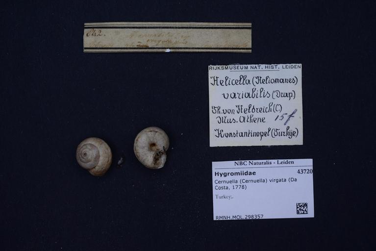 | Keywords: Naturalis Biodiversity Center - RMNH.MOL.298357 - Cernuella (Cernuella) virgata (Da Costa, 1778) - Hygromiidae - Mollusc shell.jpeg  artwork Dimensions artwork Document type Hygromiidae subfamily Hygromiinae Cernuella Individual count Infraspecific epithet Infraspecific rank Institution Naturalis Kind of unit artwork Kind of unit specimen shell Life stage Turkey Medium artwork Nomenclatural code Source institute Rijksmuseum van Natuurlijke Historie Leiden Scale the width of the text on the species/QR-code label is 38 mm Occurrence ID page Other fields Other versions artwork Permission license Naturalis donation CC-0 Mollusca Publication location Scientific name Cernuella Cernuella virgata Da Costa 1778 Scientific name authorship Da Costa 1778 Source url http //bioportal naturalis nl Specific epithet virgata State or province Subject keywords artwork Subject keywords publication Title artwork Title publication Type status Uploaded with GWToolset Naturalis_Biodiversity_Center_-_RMNH MOL 298357_-_Cernuella_ Cernuella _virgata_ Da_Costa _1778 _-_Hygromiidae_-_Mollusc_shell http //medialib naturalis nl/file/id/RMNH MOL 298357/format/large Media donated by Naturalis Biodiversity Center Molluscs at Naturalis from the Rijksmuseum van Natuurlijke Historie Cernuella virgata Cernuella |