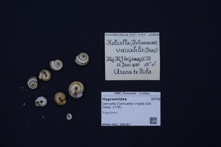 | Keywords: Naturalis Biodiversity Center - RMNH.MOL.298381 - Cernuella (Cernuella) virgata (Da Costa, 1778) - Hygromiidae - Mollusc shell.jpeg  artwork Dimensions artwork Document type Hygromiidae subfamily Hygromiinae Cernuella Individual count Infraspecific epithet Infraspecific rank Institution Naturalis Kind of unit artwork Kind of unit specimen shell Life stage Yugoslavia Medium artwork Nomenclatural code Source institute Rijksmuseum van Natuurlijke Historie Leiden Scale the width of the text on the species/QR-code label is 38 mm Occurrence ID page Other fields Other versions artwork Permission license Naturalis donation CC-0 Mollusca Publication location Scientific name Cernuella Cernuella virgata Da Costa 1778 Scientific name authorship Da Costa 1778 Source url http //bioportal naturalis nl Specific epithet virgata State or province Subject keywords artwork Subject keywords publication Title artwork Title publication Type status Uploaded with GWToolset Naturalis_Biodiversity_Center_-_RMNH MOL 298381_-_Cernuella_ Cernuella _virgata_ Da_Costa _1778 _-_Hygromiidae_-_Mollusc_shell http //medialib naturalis nl/file/id/RMNH MOL 298381/format/large Media donated by Naturalis Biodiversity Center Molluscs at Naturalis from the Rijksmuseum van Natuurlijke Historie Cernuella virgata Cernuella |