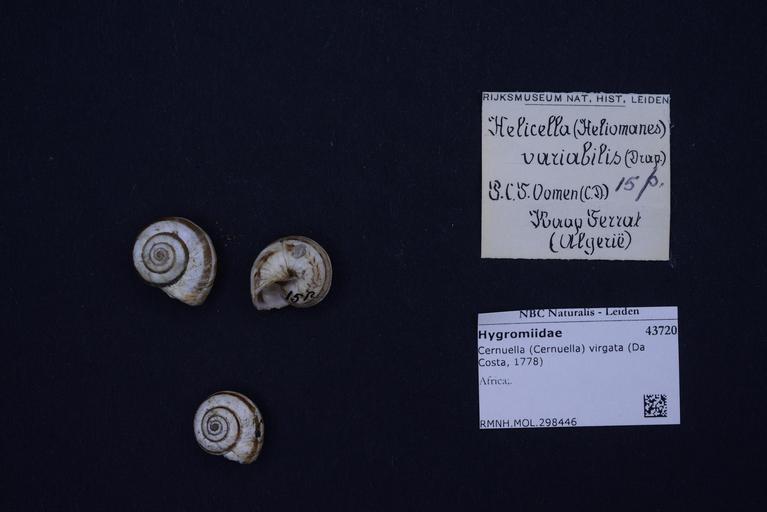 | Keywords: Naturalis Biodiversity Center - RMNH.MOL.298446 - Cernuella (Cernuella) virgata (Da Costa, 1778) - Hygromiidae - Mollusc shell.jpeg  artwork Dimensions artwork Document type Hygromiidae subfamily Hygromiinae Cernuella Individual count Infraspecific epithet Infraspecific rank Institution Naturalis Kind of unit artwork Kind of unit specimen shell Life stage Africa Medium artwork Nomenclatural code Source institute Rijksmuseum van Natuurlijke Historie Leiden Scale the width of the text on the species/QR-code label is 38 mm Occurrence ID page Other fields Other versions artwork Permission license Naturalis donation CC-0 Mollusca Publication location Scientific name Cernuella Cernuella virgata Da Costa 1778 Scientific name authorship Da Costa 1778 Source url http //bioportal naturalis nl Specific epithet virgata State or province Subject keywords artwork Subject keywords publication Title artwork Title publication Type status Uploaded with GWToolset Naturalis_Biodiversity_Center_-_RMNH MOL 298446_-_Cernuella_ Cernuella _virgata_ Da_Costa _1778 _-_Hygromiidae_-_Mollusc_shell http //medialib naturalis nl/file/id/RMNH MOL 298446/format/large Media donated by Naturalis Biodiversity Center Molluscs at Naturalis from the Rijksmuseum van Natuurlijke Historie Cernuella virgata Cernuella |