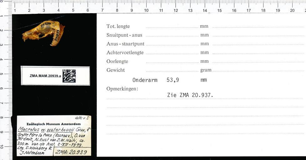 Keywords: Naturalis Biodiversity Center - ZMA.MAM.20939.a lat - Macrotus waterhousii - skull.jpeg artwork Dimensions artwork Document type Macrotus Individual count 1 Infraspecific epithet Infraspecific rank Institution Naturalis Kind of unit artwork Kind of unit specimen skull Life stage Grotte Père la Ponce Roseaux O van Jérémie N kust van Z W Haïti; ca 300 m van de kust Medium artwork Nomenclatural code Occurrence ID page Other fields Other versions artwork Permission license Naturalis donation CC-0 Publication location Scientific name Macrotus waterhousii Scientific name authorship male Source url http //bioportal naturalis nl Specific epithet waterhousii State or province Subject keywords artwork Subject keywords publication Title artwork Title publication Type status Uploaded with GWToolset Naturalis_Biodiversity_Center_-_ZMA MAM 20939 a_lat_-_Macrotus_waterhousii_-_skull http //medialib naturalis nl/file/id/ZMA MAM 20939 a_lat/format/large Mammals at Naturalis from the Zoölogisch Museum Amsterdam Media donated by Naturalis Biodiversity Center Macrotus waterhousii Macrotus |