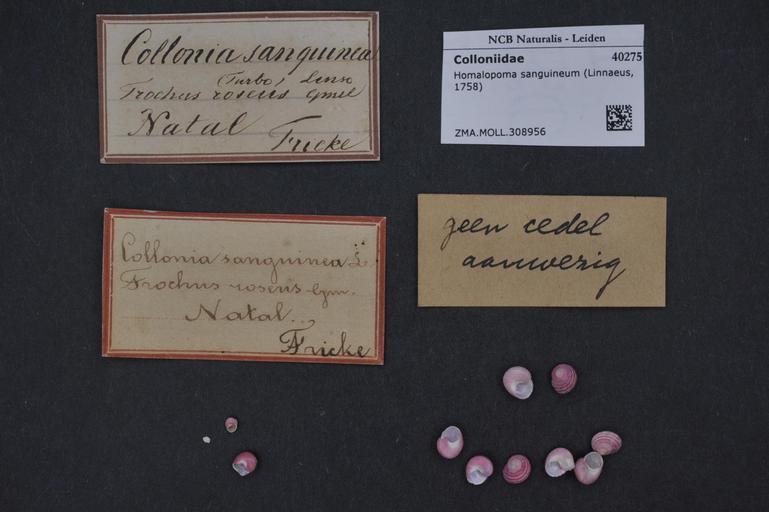 Keywords: Naturalis Biodiversity Center - ZMA.MOLL.308956 - Homalopoma sanguineum (Linnaeus, 1758) - Colloniidae - Mollusc shell.jpeg artwork Dimensions artwork Document type Colloniidae Homalopoma Individual count Infraspecific epithet Infraspecific rank Institution Naturalis Kind of unit artwork Kind of unit specimen shell Life stage Medium artwork Nomenclatural code Verbatim collectienaamSource institute Zoölogisch Museum Amsterdam Scale the width of the text on the species/QR-code label is 38 mm Occurrence ID page Other fields Other versions artwork Permission license Naturalis donation CC-0 Mollusca Publication location Scientific name Homalopoma sanguineum Linnaeus 1758 Scientific name authorship Linnaeus 1758 Source url http //bioportal naturalis nl Specific epithet sanguineum State or province Subject keywords artwork Subject keywords publication Title artwork Title publication Type status Uploaded with GWToolset Naturalis_Biodiversity_Center_-_ZMA MOLL 308956_-_Homalopoma_sanguineum_ Linnaeus _1758 _-_Colloniidae_-_Mollusc_shell http //medialib naturalis nl/file/id/ZMA MOLL 308956/format/large Media donated by Naturalis Biodiversity Center Molluscs at Naturalis from the Zoölogisch Museum Amsterdam Homalopoma sanguineum Homalopoma |