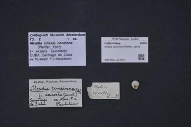 Keywords: Naturalis Biodiversity Center - ZMA.MOLL.315647 - Alcadia concinna (Pfeiffer, 1857) - Helicinidae - Mollusc shell.jpeg artwork Dimensions artwork Document type Helicinidae subfamily Helicininae Alcadia Individual count Infraspecific epithet Infraspecific rank Institution Naturalis Kind of unit artwork Kind of unit specimen shell Life stage Medium artwork Nomenclatural code Source institute Zoölogisch Museum Amsterdam Scale the width of the text on the species/QR-code label is 38 mm Occurrence ID page Other fields Other versions artwork Permission license Naturalis donation CC-0 Mollusca Publication location Scientific name Alcadia concinna Pfeiffer 1857 Scientific name authorship Pfeiffer 1857 Source url http //bioportal naturalis nl Specific epithet concinna State or province Subject keywords artwork Subject keywords publication Title artwork Title publication Type status Uploaded with GWToolset Naturalis_Biodiversity_Center_-_ZMA MOLL 315647_-_Alcadia_concinna_ Pfeiffer _1857 _-_Helicinidae_-_Mollusc_shell http //medialib naturalis nl/file/id/ZMA MOLL 315647/format/large Media donated by Naturalis Biodiversity Center Molluscs at Naturalis from the Zoölogisch Museum Amsterdam Alcadia concinna Alcadia |