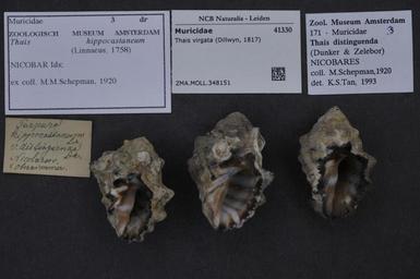 | Keywords: Naturalis Biodiversity Center - ZMA.MOLL.348151 - Thais virgata (Dillwyn, 1817) - Muricidae - Mollusc shell.jpeg  artwork Dimensions artwork Document type Muricidae subfamily Rapaninae Thais Individual count Infraspecific epithet Infraspecific rank Institution Naturalis Kind of unit artwork Kind of unit specimen shell Life stage Medium artwork Nomenclatural code Source institute Zoölogisch Museum Amsterdam Scale the width of the text on the species/QR-code label is 38 mm Occurrence ID page Neogastropoda Other fields Other versions artwork Permission license Naturalis donation CC-0 Mollusca Publication location Scientific name Thais virgata Dillwyn 1817 Scientific name authorship Dillwyn 1817 Source url http //bioportal naturalis nl Specific epithet virgata State or province Subject keywords artwork Subject keywords publication Title artwork Title publication Type status Uploaded with GWToolset Naturalis_Biodiversity_Center_-_ZMA MOLL 348151_-_Thais_virgata_ Dillwyn _1817 _-_Muricidae_-_Mollusc_shell http //medialib naturalis nl/file/id/ZMA MOLL 348151/format/large Media donated by Naturalis Biodiversity Center Molluscs at Naturalis from the Zoölogisch Museum Amsterdam Thais virgata Thais |