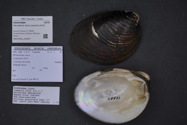 Keywords: Naturalis Biodiversity Center - ZMA.MOLL.210017 - Pleurobema clava (Lamarck, 1819) - Unionidae - Mollusc shell.jpeg artwork Dimensions artwork Document type Unionidae subfamily Ambleminae Pleurobema Individual count Infraspecific epithet Infraspecific rank Institution Naturalis Kind of unit artwork Kind of unit specimen shell Life stage United States Indiana Wabash River Medium artwork Nomenclatural code Scale the width of the text on the species/QR-code label is 38 mm Occurrence ID page Other fields Other versions artwork Permission license Naturalis donation CC-0 Mollusca Publication location Scientific name Pleurobema clava Lamarck 1819 Scientific name authorship Lamarck 1819 Source url http //bioportal naturalis nl Specific epithet clava State or province Indiana Subject keywords artwork Subject keywords publication Title artwork Title publication Type status Uploaded with GWToolset Naturalis_Biodiversity_Center_-_ZMA MOLL 210017_-_Pleurobema_clava_ Lamarck _1819 _-_Unionidae_-_Mollusc_shell http //medialib naturalis nl/file/id/ZMA MOLL 210017/format/large Media donated by Naturalis Biodiversity Center Molluscs at Naturalis from the Zoölogisch Museum Amsterdam Pleurobema clava Pleurobema |