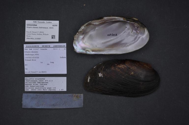 Keywords: Naturalis Biodiversity Center - ZMA.MOLL.210067 - Elliptio dilatata (Rafinesque, 1820) - Unionidae - Mollusc shell.jpeg artwork Dimensions artwork Document type Unionidae subfamily Ambleminae Elliptio Individual count Infraspecific epithet Infraspecific rank Institution Naturalis Kind of unit artwork Kind of unit specimen shell Life stage United States Indiana Wabash River Medium artwork Nomenclatural code Scale the width of the text on the species/QR-code label is 38 mm Occurrence ID page Other fields Other versions artwork Permission license Naturalis donation CC-0 Mollusca Publication location Scientific name Elliptio dilatata Rafinesque 1820 Scientific name authorship Rafinesque 1820 Source url http //bioportal naturalis nl Specific epithet dilatata State or province Indiana Subject keywords artwork Subject keywords publication Title artwork Title publication Type status Uploaded with GWToolset Naturalis_Biodiversity_Center_-_ZMA MOLL 210067_-_Elliptio_dilatata_ Rafinesque _1820 _-_Unionidae_-_Mollusc_shell http //medialib naturalis nl/file/id/ZMA MOLL 210067/format/large Media donated by Naturalis Biodiversity Center Molluscs at Naturalis from the Zoölogisch Museum Amsterdam Elliptio dilatata Elliptio |