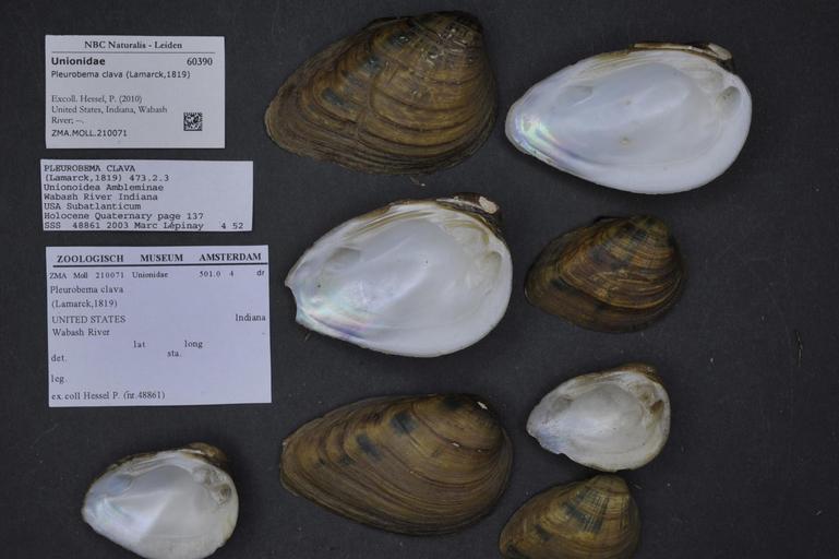 Keywords: Naturalis Biodiversity Center - ZMA.MOLL.210071 - Pleurobema clava (Lamarck, 1819) - Unionidae - Mollusc shell.jpeg artwork Dimensions artwork Document type Unionidae subfamily Ambleminae Pleurobema Individual count Infraspecific epithet Infraspecific rank Institution Naturalis Kind of unit artwork Kind of unit specimen shell Life stage United States Indiana Wabash River Medium artwork Nomenclatural code Scale the width of the text on the species/QR-code label is 38 mm Occurrence ID page Other fields Other versions artwork Permission license Naturalis donation CC-0 Mollusca Publication location Scientific name Pleurobema clava Lamarck 1819 Scientific name authorship Lamarck 1819 Source url http //bioportal naturalis nl Specific epithet clava State or province Indiana Subject keywords artwork Subject keywords publication Title artwork Title publication Type status Uploaded with GWToolset Naturalis_Biodiversity_Center_-_ZMA MOLL 210071_-_Pleurobema_clava_ Lamarck _1819 _-_Unionidae_-_Mollusc_shell http //medialib naturalis nl/file/id/ZMA MOLL 210071/format/large Media donated by Naturalis Biodiversity Center Molluscs at Naturalis from the Zoölogisch Museum Amsterdam Pleurobema clava Pleurobema |