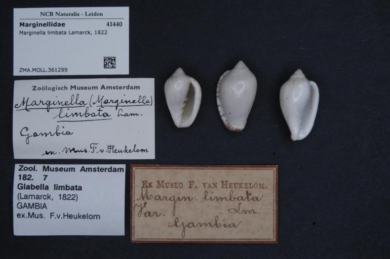 Keywords: Naturalis Biodiversity Center - ZMA.MOLL.361299 - Marginella limbata Lamarck, 1822 - Marginellidae - Mollusc shell.jpeg artwork Dimensions artwork Document type Marginellidae Marginella Individual count Infraspecific epithet Infraspecific rank Institution Naturalis Kind of unit artwork Kind of unit specimen shell Life stage Medium artwork Nomenclatural code Source institute Zoölogisch Museum Amsterdam Scale the width of the text on the species/QR-code label is 38 mm Occurrence ID page Neogastropoda Other fields Other versions artwork Permission license Naturalis donation CC-0 Mollusca Publication location Scientific name Marginella limbata Lamarck 1822 Scientific name authorship Lamarck 1822 Source url http //bioportal naturalis nl Specific epithet limbata State or province Subject keywords artwork Subject keywords publication Title artwork Title publication Type status Uploaded with GWToolset Naturalis_Biodiversity_Center_-_ZMA MOLL 361299_-_Marginella_limbata_Lamarck _1822_-_Marginellidae_-_Mollusc_shell http //medialib naturalis nl/file/id/ZMA MOLL 361299/format/large Media donated by Naturalis Biodiversity Center Molluscs at Naturalis from the Zoölogisch Museum Amsterdam Marginella limbata Marginella