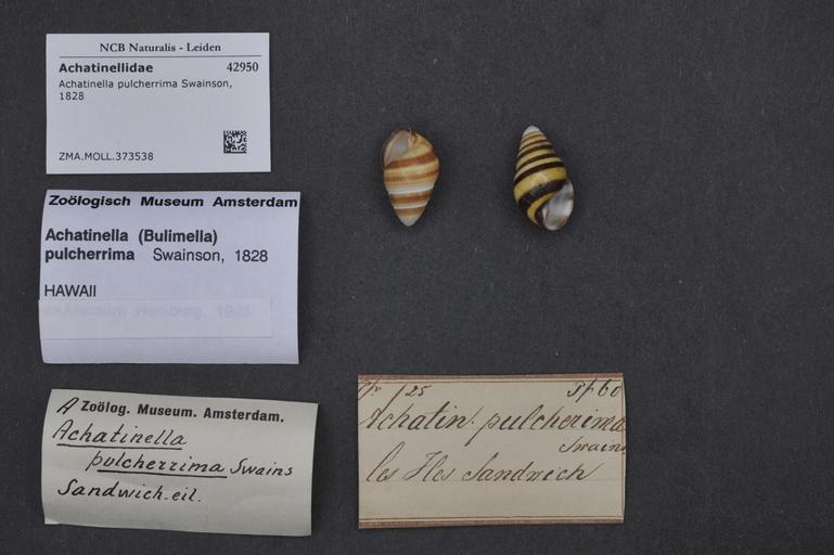 | Keywords: Naturalis Biodiversity Center - ZMA.MOLL.373538 - Achatinella pulcherrima Swainson, 1828 - Achatinellidae - Mollusc shell.jpeg  artwork Dimensions artwork Document type Achatinellidae subfamily Achatinellinae Achatinella Individual count Infraspecific epithet Infraspecific rank Institution Naturalis Kind of unit artwork Kind of unit specimen shell Life stage Medium artwork Nomenclatural code Source institute Rijksmuseum van Natuurlijke Historie Leiden Scale the width of the text on the species/QR-code label is 38 mm Occurrence ID page Other fields Other versions artwork Permission license Naturalis donation CC-0 Mollusca Publication location Scientific name Achatinella pulcherrima Swainson 1828 Scientific name authorship Swainson 1828 Source url http //bioportal naturalis nl Specific epithet pulcherrima State or province Subject keywords artwork Subject keywords publication Title artwork Title publication Type status Uploaded with GWToolset Naturalis_Biodiversity_Center_-_ZMA MOLL 373538_-_Achatinella_pulcherrima_Swainson _1828_-_Achatinellidae_-_Mollusc_shell http //medialib naturalis nl/file/id/ZMA MOLL 373538/format/large Molluscs at Naturalis from the Zoölogisch Museum Amsterdam Media donated by Naturalis Biodiversity Center Achatinella pulcherrima Achatinella |