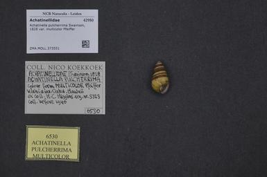 | Keywords: Naturalis Biodiversity Center - ZMA.MOLL.373551 - Achatinella pulcherrima var. multicolor Pfeiffer - Achatinellidae - Mollusc shell.jpeg  artwork Dimensions artwork Document type Achatinellidae subfamily Achatinellinae Achatinella Individual count Infraspecific epithet var multicolor Infraspecific rank Institution Naturalis Kind of unit artwork Kind of unit specimen shell Life stage Medium artwork Nomenclatural code Collection remarks verbatim collectienaamSource institute Rijksmuseum van Natuurlijke Historie Leiden Scale the width of the text on the species/QR-code label is 38 mm Occurrence ID page Other fields Other versions artwork Permission license Naturalis donation CC-0 Mollusca Publication location Scientific name Achatinella pulcherrima var multicolor Pfeiffer Scientific name authorship Pfeiffer Source url http //bioportal naturalis nl Specific epithet pulcherrima State or province Subject keywords artwork Subject keywords publication Title artwork Title publication Type status Uploaded with GWToolset Naturalis_Biodiversity_Center_-_ZMA MOLL 373551_-_Achatinella_pulcherrima_var _multicolor_Pfeiffer_-_Achatinellidae_-_Mollusc_shell http //medialib naturalis nl/file/id/ZMA MOLL 373551/format/large Molluscs at Naturalis from the Zoölogisch Museum Amsterdam Media donated by Naturalis Biodiversity Center Achatinella pulcherrima Achatinella |