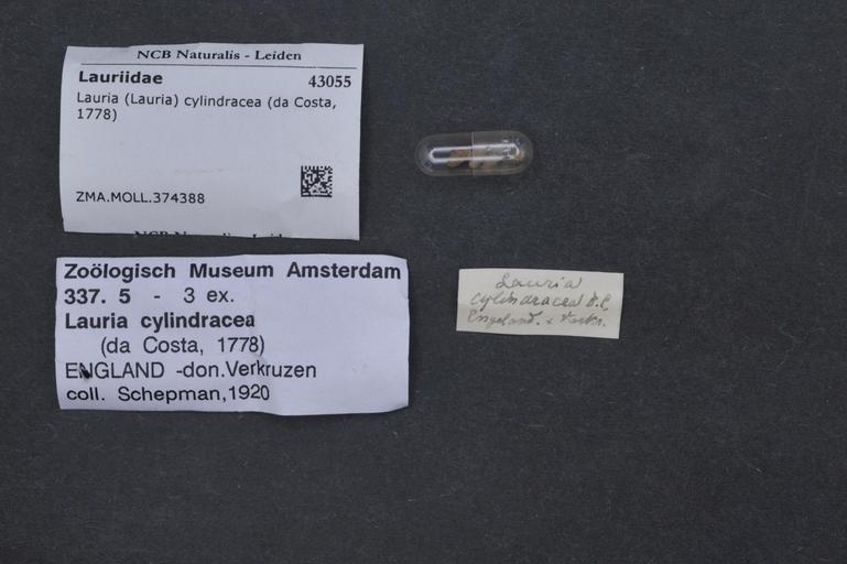 | Keywords: Naturalis Biodiversity Center - ZMA.MOLL.374388 - Lauria (Lauria) cylindracea (Da Costa, 1778) - Lauriidae - Mollusc shell.jpeg  artwork Dimensions artwork Document type Lauriidae Lauria Individual count Infraspecific epithet Infraspecific rank Institution Naturalis Kind of unit artwork Kind of unit specimen shell Life stage Medium artwork Nomenclatural code Source institute Rijksmuseum van Natuurlijke Historie Leiden Scale the width of the text on the species/QR-code label is 38 mm Occurrence ID page Other fields Other versions artwork Permission license Naturalis donation CC-0 Mollusca Publication location Scientific name Lauria Lauria cylindracea Da Costa 1778 Scientific name authorship Da Costa 1778 Source url http //bioportal naturalis nl Specific epithet cylindracea State or province Subject keywords artwork Subject keywords publication Title artwork Title publication Type status Uploaded with GWToolset Naturalis_Biodiversity_Center_-_ZMA MOLL 374388_-_Lauria_ Lauria _cylindracea_ Da_Costa _1778 _-_Lauriidae_-_Mollusc_shell http //medialib naturalis nl/file/id/ZMA MOLL 374388/format/large Molluscs at Naturalis from the Zoölogisch Museum Amsterdam Media donated by Naturalis Biodiversity Center Lauria cylindracea Lauria |