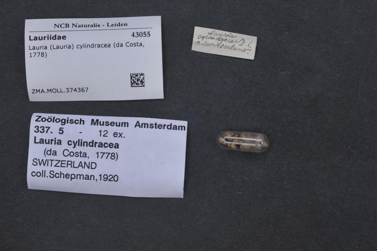 | Keywords: Naturalis Biodiversity Center - ZMA.MOLL.374367 - Lauria (Lauria) cylindracea (Da Costa, 1778) - Lauriidae - Mollusc shell.jpeg  artwork Dimensions artwork Document type Lauriidae Lauria Individual count Infraspecific epithet Infraspecific rank Institution Naturalis Kind of unit artwork Kind of unit specimen shell Life stage Medium artwork Nomenclatural code Source institute Rijksmuseum van Natuurlijke Historie Leiden Scale the width of the text on the species/QR-code label is 38 mm Occurrence ID page Other fields Other versions artwork Permission license Naturalis donation CC-0 Mollusca Publication location Scientific name Lauria Lauria cylindracea Da Costa 1778 Scientific name authorship Da Costa 1778 Source url http //bioportal naturalis nl Specific epithet cylindracea State or province Subject keywords artwork Subject keywords publication Title artwork Title publication Type status Uploaded with GWToolset Naturalis_Biodiversity_Center_-_ZMA MOLL 374367_-_Lauria_ Lauria _cylindracea_ Da_Costa _1778 _-_Lauriidae_-_Mollusc_shell http //medialib naturalis nl/file/id/ZMA MOLL 374367/format/large Molluscs at Naturalis from the Zoölogisch Museum Amsterdam Media donated by Naturalis Biodiversity Center Lauria cylindracea Lauria |