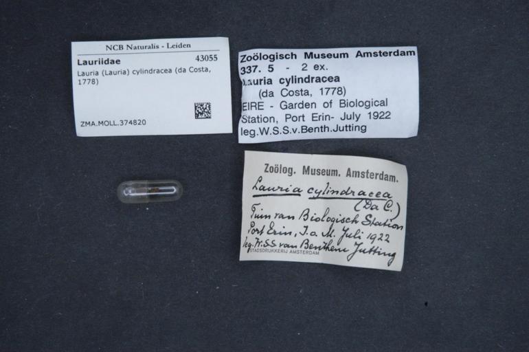 | Keywords: Naturalis Biodiversity Center - ZMA.MOLL.374820 - Lauria (Lauria) cylindracea (Da Costa, 1778) - Lauriidae - Mollusc shell.jpeg  artwork Dimensions artwork Document type Lauriidae Lauria Individual count Infraspecific epithet Infraspecific rank Institution Naturalis Kind of unit artwork Kind of unit specimen shell Life stage Medium artwork Nomenclatural code Source institute Rijksmuseum van Natuurlijke Historie Leiden Scale the width of the text on the species/QR-code label is 38 mm Occurrence ID page Other fields Other versions artwork Permission license Naturalis donation CC-0 Mollusca Publication location Scientific name Lauria Lauria cylindracea Da Costa 1778 Scientific name authorship Da Costa 1778 Source url http //bioportal naturalis nl Specific epithet cylindracea State or province Subject keywords artwork Subject keywords publication Title artwork Title publication Type status Uploaded with GWToolset Naturalis_Biodiversity_Center_-_ZMA MOLL 374820_-_Lauria_ Lauria _cylindracea_ Da_Costa _1778 _-_Lauriidae_-_Mollusc_shell http //medialib naturalis nl/file/id/ZMA MOLL 374820/format/large Molluscs at Naturalis from the Zoölogisch Museum Amsterdam Media donated by Naturalis Biodiversity Center Lauria cylindracea Lauria |