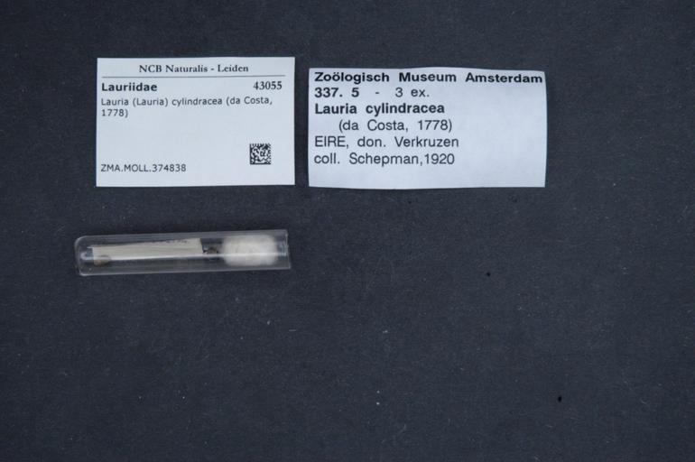 | Keywords: Naturalis Biodiversity Center - ZMA.MOLL.374838 - Lauria (Lauria) cylindracea (Da Costa, 1778) - Lauriidae - Mollusc shell.jpeg  artwork Dimensions artwork Document type Lauriidae Lauria Individual count Infraspecific epithet Infraspecific rank Institution Naturalis Kind of unit artwork Kind of unit specimen shell Life stage Medium artwork Nomenclatural code Source institute Rijksmuseum van Natuurlijke Historie Leiden Scale the width of the text on the species/QR-code label is 38 mm Occurrence ID page Other fields Other versions artwork Permission license Naturalis donation CC-0 Mollusca Publication location Scientific name Lauria Lauria cylindracea Da Costa 1778 Scientific name authorship Da Costa 1778 Source url http //bioportal naturalis nl Specific epithet cylindracea State or province Subject keywords artwork Subject keywords publication Title artwork Title publication Type status Uploaded with GWToolset Naturalis_Biodiversity_Center_-_ZMA MOLL 374838_-_Lauria_ Lauria _cylindracea_ Da_Costa _1778 _-_Lauriidae_-_Mollusc_shell http //medialib naturalis nl/file/id/ZMA MOLL 374838/format/large Molluscs at Naturalis from the Zoölogisch Museum Amsterdam Media donated by Naturalis Biodiversity Center Lauria cylindracea Lauria |