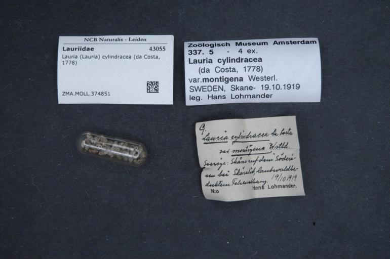 | Keywords: Naturalis Biodiversity Center - ZMA.MOLL.374851 - Lauria (Lauria) cylindracea (Da Costa, 1778) - Lauriidae - Mollusc shell.jpeg  artwork Dimensions artwork Document type Lauriidae Lauria Individual count Infraspecific epithet Infraspecific rank Institution Naturalis Kind of unit artwork Kind of unit specimen shell Life stage Medium artwork Nomenclatural code Source institute Rijksmuseum van Natuurlijke Historie Leiden Scale the width of the text on the species/QR-code label is 38 mm Occurrence ID page Other fields Other versions artwork Permission license Naturalis donation CC-0 Mollusca Publication location Scientific name Lauria Lauria cylindracea Da Costa 1778 Scientific name authorship Da Costa 1778 Source url http //bioportal naturalis nl Specific epithet cylindracea State or province Subject keywords artwork Subject keywords publication Title artwork Title publication Type status Uploaded with GWToolset Naturalis_Biodiversity_Center_-_ZMA MOLL 374851_-_Lauria_ Lauria _cylindracea_ Da_Costa _1778 _-_Lauriidae_-_Mollusc_shell http //medialib naturalis nl/file/id/ZMA MOLL 374851/format/large Molluscs at Naturalis from the Zoölogisch Museum Amsterdam Media donated by Naturalis Biodiversity Center Lauria cylindracea Lauria |
