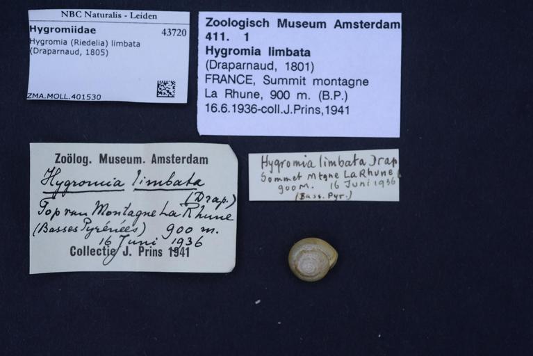 Keywords: Naturalis Biodiversity Center - ZMA.MOLL.401530 - Hygromia (Riedelia) limbata (Draparnaud, 1805) - Hygromiidae - Mollusc shell.jpeg artwork Dimensions artwork Document type Hygromiidae subfamily Hygromiinae Hygromia Individual count Infraspecific epithet Infraspecific rank Institution Naturalis Kind of unit artwork Kind of unit specimen shell Life stage Medium artwork Nomenclatural code Source institute Rijksmuseum van Natuurlijke Historie Leiden Scale the width of the text on the species/QR-code label is 38 mm Occurrence ID page Other fields Other versions artwork Permission license Naturalis donation CC-0 Mollusca Publication location Scientific name Hygromia Riedelia limbata Draparnaud 1805 Scientific name authorship Draparnaud 1805 Source url http //bioportal naturalis nl Specific epithet limbata State or province Subject keywords artwork Subject keywords publication Title artwork Title publication Type status Uploaded with GWToolset Naturalis_Biodiversity_Center_-_ZMA MOLL 401530_-_Hygromia_ Riedelia _limbata_ Draparnaud _1805 _-_Hygromiidae_-_Mollusc_shell http //medialib naturalis nl/file/id/ZMA MOLL 401530/format/large Molluscs at Naturalis from the Zoölogisch Museum Amsterdam Media donated by Naturalis Biodiversity Center Hygromia limbata Hygromia