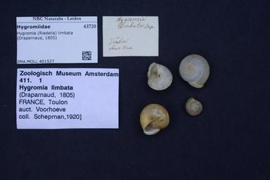 | Keywords: Naturalis Biodiversity Center - ZMA.MOLL.401527 - Hygromia (Riedelia) limbata (Draparnaud, 1805) - Hygromiidae - Mollusc shell.jpeg  artwork Dimensions artwork Document type Hygromiidae subfamily Hygromiinae Hygromia Individual count Infraspecific epithet Infraspecific rank Institution Naturalis Kind of unit artwork Kind of unit specimen shell Life stage Medium artwork Nomenclatural code Source institute Rijksmuseum van Natuurlijke Historie Leiden Scale the width of the text on the species/QR-code label is 38 mm Occurrence ID page Other fields Other versions artwork Permission license Naturalis donation CC-0 Mollusca Publication location Scientific name Hygromia Riedelia limbata Draparnaud 1805 Scientific name authorship Draparnaud 1805 Source url http //bioportal naturalis nl Specific epithet limbata State or province Subject keywords artwork Subject keywords publication Title artwork Title publication Type status Uploaded with GWToolset Naturalis_Biodiversity_Center_-_ZMA MOLL 401527_-_Hygromia_ Riedelia _limbata_ Draparnaud _1805 _-_Hygromiidae_-_Mollusc_shell http //medialib naturalis nl/file/id/ZMA MOLL 401527/format/large Molluscs at Naturalis from the Zoölogisch Museum Amsterdam Media donated by Naturalis Biodiversity Center Hygromia limbata Hygromia |