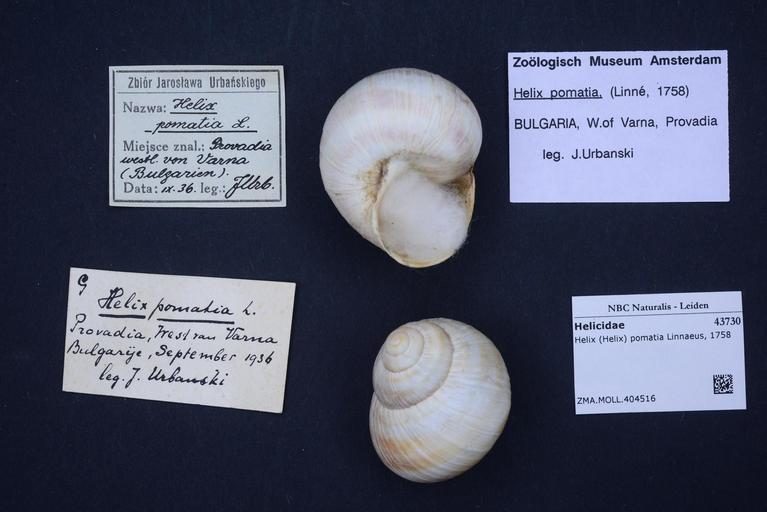 | Keywords: Naturalis Biodiversity Center - ZMA.MOLL.404516 - Helix (Helix) pomatia Linnaeus, 1758 - Helicidae - Mollusc shell.jpeg artwork Dimensions artwork Document type Helicidae subfamily Helicinae Helix Individual count Infraspecific epithet Infraspecific rank Institution Naturalis Kind of unit artwork Kind of unit specimen shell Life stage Medium artwork Nomenclatural code Source institute Rijksmuseum van Natuurlijke Historie Leiden Scale the width of the text on the species/QR-code label is 38 mm Occurrence ID page Other fields Other versions artwork Permission license Naturalis donation CC-0 Mollusca Publication location Scientific name Helix Helix pomatia Linnaeus 1758 Scientific name authorship Linnaeus 1758 Source url http //bioportal naturalis nl Specific epithet pomatia State or province Subject keywords artwork Subject keywords publication Title artwork Title publication Type status Uploaded with GWToolset Naturalis_Biodiversity_Center_-_ZMA MOLL 404516_-_Helix_ Helix _pomatia_Linnaeus _1758_-_Helicidae_-_Mollusc_shell http //medialib naturalis nl/file/id/ZMA MOLL 404516/format/large Molluscs at Naturalis from the Zoölogisch Museum Amsterdam Media donated by Naturalis Biodiversity Center Helix pomatia Helix |