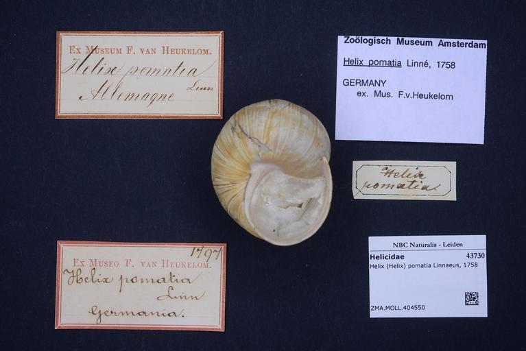 | Keywords: Naturalis Biodiversity Center - ZMA.MOLL.404550 - Helix (Helix) pomatia Linnaeus, 1758 - Helicidae - Mollusc shell.jpeg artwork Dimensions artwork Document type Helicidae subfamily Helicinae Helix Individual count Infraspecific epithet Infraspecific rank Institution Naturalis Kind of unit artwork Kind of unit specimen shell Life stage Medium artwork Nomenclatural code Source institute Rijksmuseum van Natuurlijke Historie Leiden Scale the width of the text on the species/QR-code label is 38 mm Occurrence ID page Other fields Other versions artwork Permission license Naturalis donation CC-0 Mollusca Publication location Scientific name Helix Helix pomatia Linnaeus 1758 Scientific name authorship Linnaeus 1758 Source url http //bioportal naturalis nl Specific epithet pomatia State or province Subject keywords artwork Subject keywords publication Title artwork Title publication Type status Uploaded with GWToolset Naturalis_Biodiversity_Center_-_ZMA MOLL 404550_-_Helix_ Helix _pomatia_Linnaeus _1758_-_Helicidae_-_Mollusc_shell http //medialib naturalis nl/file/id/ZMA MOLL 404550/format/large Molluscs at Naturalis from the Zoölogisch Museum Amsterdam Media donated by Naturalis Biodiversity Center Helix pomatia Helix |