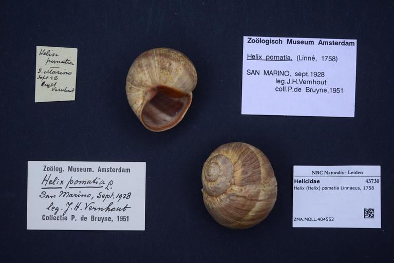 | Keywords: Naturalis Biodiversity Center - ZMA.MOLL.404552 - Helix (Helix) pomatia Linnaeus, 1758 - Helicidae - Mollusc shell.jpeg  artwork Dimensions artwork Document type Helicidae subfamily Helicinae Helix Individual count Infraspecific epithet Infraspecific rank Institution Naturalis Kind of unit artwork Kind of unit specimen shell Life stage Medium artwork Nomenclatural code Source institute Rijksmuseum van Natuurlijke Historie Leiden Scale the width of the text on the species/QR-code label is 38 mm Occurrence ID page Other fields Other versions artwork Permission license Naturalis donation CC-0 Mollusca Publication location Scientific name Helix Helix pomatia Linnaeus 1758 Scientific name authorship Linnaeus 1758 Source url http //bioportal naturalis nl Specific epithet pomatia State or province Subject keywords artwork Subject keywords publication Title artwork Title publication Type status Uploaded with GWToolset Naturalis_Biodiversity_Center_-_ZMA MOLL 404552_-_Helix_ Helix _pomatia_Linnaeus _1758_-_Helicidae_-_Mollusc_shell http //medialib naturalis nl/file/id/ZMA MOLL 404552/format/large Molluscs at Naturalis from the Zoölogisch Museum Amsterdam Media donated by Naturalis Biodiversity Center Helix pomatia Helix |