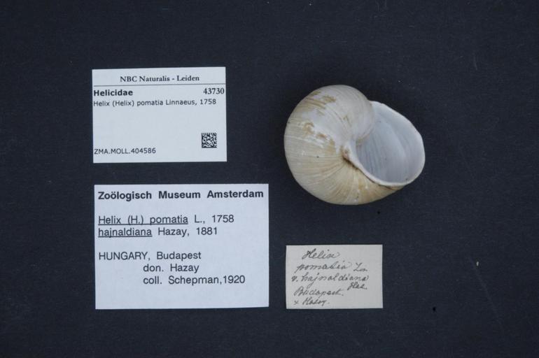 | Keywords: Naturalis Biodiversity Center - ZMA.MOLL.404586 - Helix (Helix) pomatia Linnaeus, 1758 - Helicidae - Mollusc shell.jpeg  artwork Dimensions artwork Document type Helicidae subfamily Helicinae Helix Individual count Infraspecific epithet Infraspecific rank Institution Naturalis Kind of unit artwork Kind of unit specimen shell Life stage Medium artwork Nomenclatural code Source institute Rijksmuseum van Natuurlijke Historie Leiden Scale the width of the text on the species/QR-code label is 38 mm Occurrence ID page Other fields Other versions artwork Permission license Naturalis donation CC-0 Mollusca Publication location Scientific name Helix Helix pomatia Linnaeus 1758 Scientific name authorship Linnaeus 1758 Source url http //bioportal naturalis nl Specific epithet pomatia State or province Subject keywords artwork Subject keywords publication Title artwork Title publication Type status Uploaded with GWToolset Naturalis_Biodiversity_Center_-_ZMA MOLL 404586_-_Helix_ Helix _pomatia_Linnaeus _1758_-_Helicidae_-_Mollusc_shell http //medialib naturalis nl/file/id/ZMA MOLL 404586/format/large Molluscs at Naturalis from the Zoölogisch Museum Amsterdam Media donated by Naturalis Biodiversity Center Helix pomatia Helix |