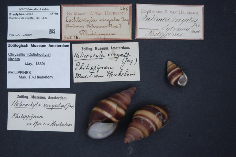 | Keywords: Naturalis Biodiversity Center - ZMA.MOLL.408424 - Dolichostyla virgata (Jay, 1839) - Bradybaenidae - Mollusc shell.jpeg  artwork Dimensions artwork Document type Bradybaenidae Dolichostyla Individual count Infraspecific epithet Infraspecific rank Institution Naturalis Kind of unit artwork Kind of unit specimen shell Life stage Medium artwork Nomenclatural code Source institute Zoölogisch Museum Amsterdam Scale the width of the text on the species/QR-code label is 38 mm Occurrence ID page Other fields Other versions artwork Permission license Naturalis donation CC-0 Mollusca Publication location Scientific name Dolichostyla virgata Jay 1839 Scientific name authorship Jay 1839 Source url http //bioportal naturalis nl Specific epithet virgata State or province Subject keywords artwork Subject keywords publication Title artwork Title publication Type status Uploaded with GWToolset Naturalis_Biodiversity_Center_-_ZMA MOLL 408424_-_Dolichostyla_virgata_ Jay _1839 _-_Bradybaenidae_-_Mollusc_shell http //medialib naturalis nl/file/id/ZMA MOLL 408424/format/large Molluscs at Naturalis from the Zoölogisch Museum Amsterdam Media donated by Naturalis Biodiversity Center Dolichostyla virgata Dolichostyla |