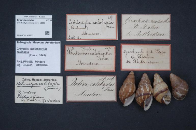 | Keywords: Naturalis Biodiversity Center - ZMA.MOLL.408537 - Dolichostyla virgata (Jay, 1839) - Bradybaenidae - Mollusc shell.jpeg  artwork Dimensions artwork Document type Bradybaenidae Dolichostyla Individual count Infraspecific epithet Infraspecific rank Institution Naturalis Kind of unit artwork Kind of unit specimen shell Life stage Medium artwork Nomenclatural code Source institute Zoölogisch Museum Amsterdam Scale the width of the text on the species/QR-code label is 38 mm Occurrence ID page Other fields Other versions artwork Permission license Naturalis donation CC-0 Mollusca Publication location Scientific name Dolichostyla virgata Jay 1839 Scientific name authorship Jay 1839 Source url http //bioportal naturalis nl Specific epithet virgata State or province Subject keywords artwork Subject keywords publication Title artwork Title publication Type status Uploaded with GWToolset Naturalis_Biodiversity_Center_-_ZMA MOLL 408537_-_Dolichostyla_virgata_ Jay _1839 _-_Bradybaenidae_-_Mollusc_shell http //medialib naturalis nl/file/id/ZMA MOLL 408537/format/large Molluscs at Naturalis from the Zoölogisch Museum Amsterdam Media donated by Naturalis Biodiversity Center Dolichostyla virgata Dolichostyla |