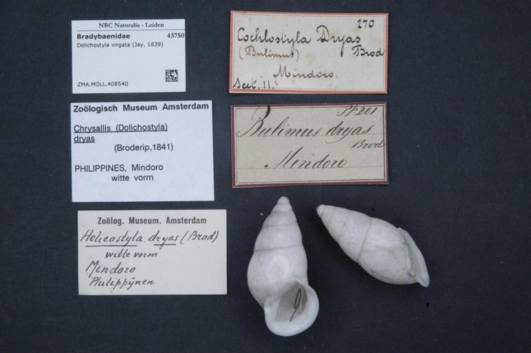 | Keywords: Naturalis Biodiversity Center - ZMA.MOLL.408540 - Dolichostyla virgata (Jay, 1839) - Bradybaenidae - Mollusc shell.jpeg  artwork Dimensions artwork Document type Bradybaenidae Dolichostyla Individual count Infraspecific epithet Infraspecific rank Institution Naturalis Kind of unit artwork Kind of unit specimen shell Life stage Medium artwork Nomenclatural code Source institute Zoölogisch Museum Amsterdam Scale the width of the text on the species/QR-code label is 38 mm Occurrence ID page Other fields Other versions artwork Permission license Naturalis donation CC-0 Mollusca Publication location Scientific name Dolichostyla virgata Jay 1839 Scientific name authorship Jay 1839 Source url http //bioportal naturalis nl Specific epithet virgata State or province Subject keywords artwork Subject keywords publication Title artwork Title publication Type status Uploaded with GWToolset Naturalis_Biodiversity_Center_-_ZMA MOLL 408540_-_Dolichostyla_virgata_ Jay _1839 _-_Bradybaenidae_-_Mollusc_shell http //medialib naturalis nl/file/id/ZMA MOLL 408540/format/large Molluscs at Naturalis from the Zoölogisch Museum Amsterdam Media donated by Naturalis Biodiversity Center Dolichostyla virgata Dolichostyla |