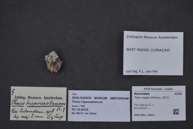 | Keywords: Naturalis Biodiversity Center - ZMA.MOLL.28421 1 - Thais virgata (Dillwyn, 1817) - Muricidae - Mollusc shell.jpeg  artwork Dimensions artwork Document type Muricidae subfamily Rapaninae Thais Individual count Infraspecific epithet Infraspecific rank Institution Naturalis Kind of unit artwork Kind of unit specimen shell Life stage Kei Islands Medium artwork Nomenclatural code Scale the width of the text on the species/QR-code label is 38 mm Occurrence ID page Neogastropoda Other fields Other versions artwork Permission license Naturalis donation CC-0 Mollusca Publication location Scientific name Thais virgata Dillwyn 1817 Scientific name authorship Dillwyn 1817 Source url http //bioportal naturalis nl Specific epithet virgata State or province Kei Islands Subject keywords artwork Subject keywords publication Title artwork Title publication Type status Uploaded with GWToolset Naturalis_Biodiversity_Center_-_ZMA MOLL 28421_1_-_Thais_virgata_ Dillwyn _1817 _-_Muricidae_-_Mollusc_shell http //medialib naturalis nl/file/id/ZMA MOLL 28421_1/format/large Media donated by Naturalis Biodiversity Center Molluscs at Naturalis from the Zoölogisch Museum Amsterdam Thais virgata |