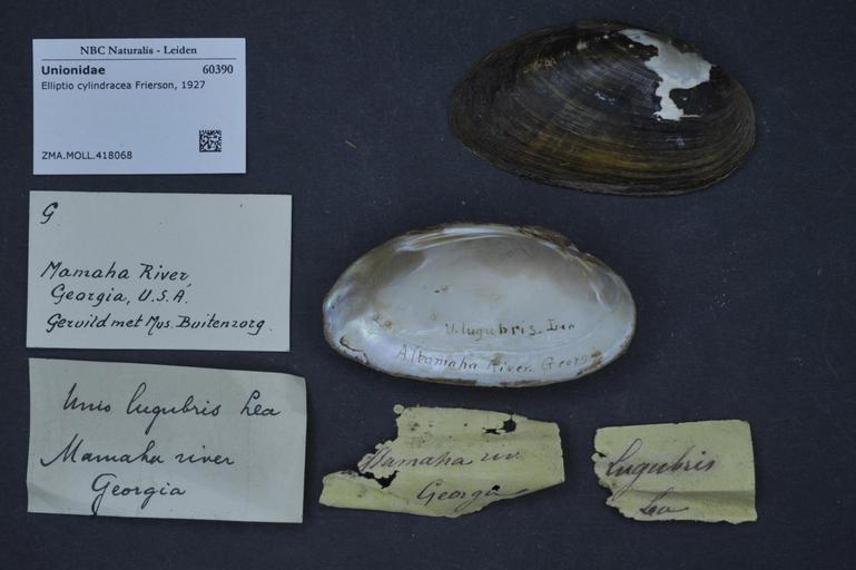 | Keywords: Naturalis Biodiversity Center - ZMA.MOLL.418068 - Elliptio cylindracea Frierson, 1927 - Unionidae - Mollusc shell.jpeg  artwork Dimensions artwork Document type Unionidae subfamily Ambleminae Elliptio Individual count Infraspecific epithet Infraspecific rank Institution Naturalis Kind of unit artwork Kind of unit specimen shell Life stage Medium artwork Nomenclatural code Source institute Zoölogisch Museum Amsterdam Scale the width of the text on the species/QR-code label is 38 mm Occurrence ID page Other fields Other versions artwork Permission license Naturalis donation CC-0 Mollusca Publication location Scientific name Elliptio cylindracea Frierson 1927 Scientific name authorship Frierson 1927 Source url http //bioportal naturalis nl Specific epithet cylindracea State or province Subject keywords artwork Subject keywords publication Title artwork Title publication Type status Uploaded with GWToolset Naturalis_Biodiversity_Center_-_ZMA MOLL 418068_-_Elliptio_cylindracea_Frierson _1927_-_Unionidae_-_Mollusc_shell http //medialib naturalis nl/file/id/ZMA MOLL 418068/format/large Molluscs at Naturalis from the Zoölogisch Museum Amsterdam Media donated by Naturalis Biodiversity Center Elliptio cylindracea Elliptio |