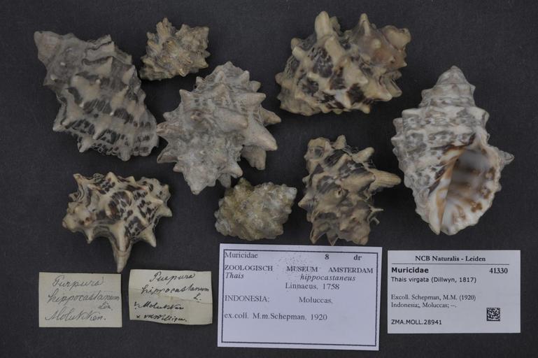| Keywords: Naturalis Biodiversity Center - ZMA.MOLL.28941 - Thais virgata (Dillwyn, 1817) - Muricidae - Mollusc shell.jpeg  artwork Dimensions artwork Document type Muricidae subfamily Rapaninae Thais Individual count Infraspecific epithet Infraspecific rank Institution Naturalis Kind of unit artwork Kind of unit specimen shell Life stage Indonesia; Moluccas Medium artwork Nomenclatural code Scale the width of the text on the species/QR-code label is 38 mm Occurrence ID page Neogastropoda Other fields Other versions artwork Permission license Naturalis donation CC-0 Mollusca Publication location Scientific name Thais virgata Dillwyn 1817 Scientific name authorship Dillwyn 1817 Source url http //bioportal naturalis nl Specific epithet virgata State or province Moluccas Subject keywords artwork Subject keywords publication Title artwork Title publication Type status Uploaded with GWToolset Naturalis_Biodiversity_Center_-_ZMA MOLL 28941_-_Thais_virgata_ Dillwyn _1817 _-_Muricidae_-_Mollusc_shell http //medialib naturalis nl/file/id/ZMA MOLL 28941/format/large Media donated by Naturalis Biodiversity Center Molluscs at Naturalis from the Zoölogisch Museum Amsterdam Thais virgata |
