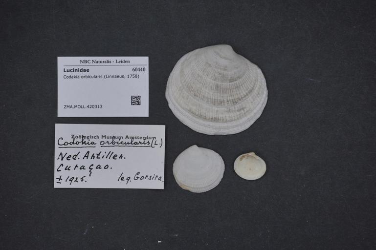 Keywords: Naturalis Biodiversity Center - ZMA.MOLL.420313 - Codakia orbicularis (Linnaeus, 1758) - Lucinidae - Mollusc shell.jpeg artwork Dimensions artwork Document type Lucinidae subfamily Lucininae Codakia Individual count Infraspecific epithet Infraspecific rank Institution Naturalis Kind of unit artwork Kind of unit specimen shell Life stage Medium artwork Nomenclatural code Source institute Zoölogisch Museum Amsterdam Scale the width of the text on the species/QR-code label is 38 mm Occurrence ID page Other fields Other versions artwork Permission license Naturalis donation CC-0 Mollusca Publication location Scientific name Codakia orbicularis Linnaeus 1758 Scientific name authorship Linnaeus 1758 Source url http //bioportal naturalis nl Specific epithet orbicularis State or province Subject keywords artwork Subject keywords publication Title artwork Title publication Type status Uploaded with GWToolset Naturalis_Biodiversity_Center_-_ZMA MOLL 420313_-_Codakia_orbicularis_ Linnaeus _1758 _-_Lucinidae_-_Mollusc_shell http //medialib naturalis nl/file/id/ZMA MOLL 420313/format/large Molluscs at Naturalis from the Zoölogisch Museum Amsterdam Media donated by Naturalis Biodiversity Center Codakia orbicularis Codakia |