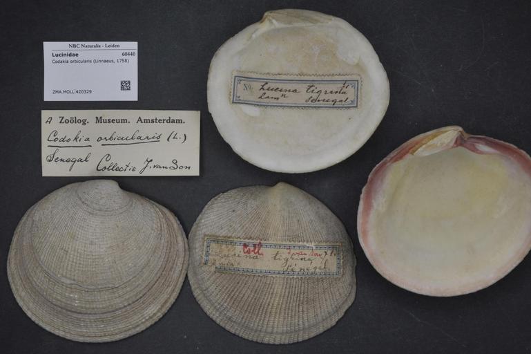 Keywords: Naturalis Biodiversity Center - ZMA.MOLL.420329 - Codakia orbicularis (Linnaeus, 1758) - Lucinidae - Mollusc shell.jpeg artwork Dimensions artwork Document type Lucinidae subfamily Lucininae Codakia Individual count Infraspecific epithet Infraspecific rank Institution Naturalis Kind of unit artwork Kind of unit specimen shell Life stage Medium artwork Nomenclatural code Source institute Zoölogisch Museum Amsterdam Scale the width of the text on the species/QR-code label is 38 mm Occurrence ID page Other fields Other versions artwork Permission license Naturalis donation CC-0 Mollusca Publication location Scientific name Codakia orbicularis Linnaeus 1758 Scientific name authorship Linnaeus 1758 Source url http //bioportal naturalis nl Specific epithet orbicularis State or province Subject keywords artwork Subject keywords publication Title artwork Title publication Type status Uploaded with GWToolset Naturalis_Biodiversity_Center_-_ZMA MOLL 420329_-_Codakia_orbicularis_ Linnaeus _1758 _-_Lucinidae_-_Mollusc_shell http //medialib naturalis nl/file/id/ZMA MOLL 420329/format/large Molluscs at Naturalis from the Zoölogisch Museum Amsterdam Media donated by Naturalis Biodiversity Center Codakia orbicularis Codakia |