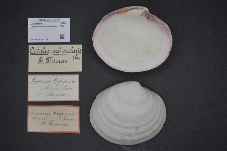 Keywords: Naturalis Biodiversity Center - ZMA.MOLL.420334 - Codakia orbicularis (Linnaeus, 1758) - Lucinidae - Mollusc shell.jpeg artwork Dimensions artwork Document type Lucinidae subfamily Lucininae Codakia Individual count Infraspecific epithet Infraspecific rank Institution Naturalis Kind of unit artwork Kind of unit specimen shell Life stage Medium artwork Nomenclatural code Source institute Zoölogisch Museum Amsterdam Scale the width of the text on the species/QR-code label is 38 mm Occurrence ID page Other fields Other versions artwork Permission license Naturalis donation CC-0 Mollusca Publication location Scientific name Codakia orbicularis Linnaeus 1758 Scientific name authorship Linnaeus 1758 Source url http //bioportal naturalis nl Specific epithet orbicularis State or province Subject keywords artwork Subject keywords publication Title artwork Title publication Type status Uploaded with GWToolset Naturalis_Biodiversity_Center_-_ZMA MOLL 420334_-_Codakia_orbicularis_ Linnaeus _1758 _-_Lucinidae_-_Mollusc_shell http //medialib naturalis nl/file/id/ZMA MOLL 420334/format/large Molluscs at Naturalis from the Zoölogisch Museum Amsterdam Media donated by Naturalis Biodiversity Center Codakia orbicularis Codakia |
