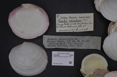 Keywords: Naturalis Biodiversity Center - ZMA.MOLL.420348 - Codakia orbicularis (Linnaeus, 1758) - Lucinidae - Mollusc shell.jpeg artwork Dimensions artwork Document type Lucinidae subfamily Lucininae Codakia Individual count Infraspecific epithet Infraspecific rank Institution Naturalis Kind of unit artwork Kind of unit specimen shell Life stage Medium artwork Nomenclatural code Source institute Zoölogisch Museum Amsterdam Scale the width of the text on the species/QR-code label is 38 mm Occurrence ID page Other fields Other versions artwork Permission license Naturalis donation CC-0 Mollusca Publication location Scientific name Codakia orbicularis Linnaeus 1758 Scientific name authorship Linnaeus 1758 Source url http //bioportal naturalis nl Specific epithet orbicularis State or province Subject keywords artwork Subject keywords publication Title artwork Title publication Type status Uploaded with GWToolset Naturalis_Biodiversity_Center_-_ZMA MOLL 420348_-_Codakia_orbicularis_ Linnaeus _1758 _-_Lucinidae_-_Mollusc_shell http //medialib naturalis nl/file/id/ZMA MOLL 420348/format/large Molluscs at Naturalis from the Zoölogisch Museum Amsterdam Media donated by Naturalis Biodiversity Center Codakia orbicularis Codakia |