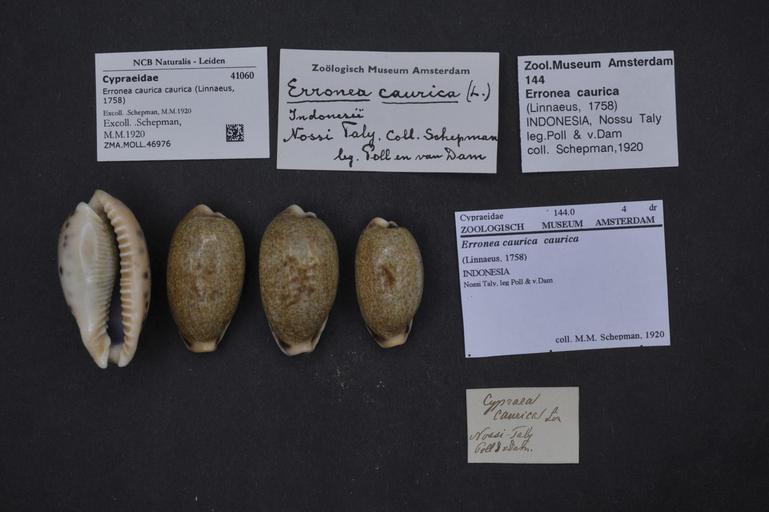 | Keywords: Naturalis Biodiversity Center - ZMA.MOLL.46976 - Erronea caurica caurica (Linnaeus, 1758) - Cypraeidae - Mollusc shell.jpeg artwork Dimensions artwork Document type Cypraeidae subfamily Cypraeovulinae Erronea Individual count Infraspecific epithet caurica Infraspecific rank Institution Naturalis Kind of unit artwork Kind of unit specimen shell Life stage Indonesia Nossi Taly leg Poll v Dam Medium artwork Nomenclatural code Source institute Zoölogisch Museum Amsterdam Scale the width of the text on the species/QR-code label is 38 mm Occurrence ID page Other fields Other versions artwork Permission license Naturalis donation CC-0 Mollusca Publication location Scientific name Erronea caurica caurica Linnaeus 1758 Scientific name authorship Linnaeus 1758 Source url http //bioportal naturalis nl Specific epithet caurica State or province Subject keywords artwork Subject keywords publication Title artwork Title publication Type status Uploaded with GWToolset Naturalis_Biodiversity_Center_-_ZMA MOLL 46976_-_Erronea_caurica_caurica_ Linnaeus _1758 _-_Cypraeidae_-_Mollusc_shell http //medialib naturalis nl/file/id/ZMA MOLL 46976/format/large Molluscs at Naturalis from the Zoölogisch Museum Amsterdam Media donated by Naturalis Biodiversity Center Erronea caurica Erronea |