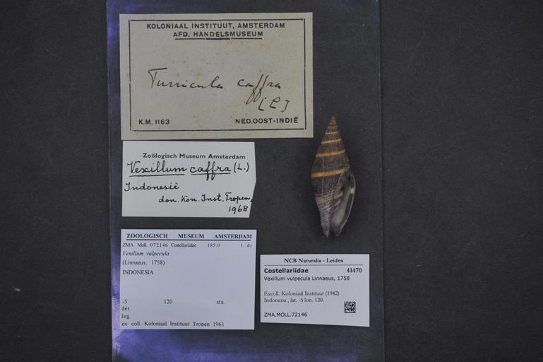 | Keywords: Naturalis Biodiversity Center - ZMA.MOLL.72146 - Vexillum vulpecula (Linnaeus, 1758) - Costellariidae - Mollusc shell.jpeg artwork Dimensions artwork Document type Costellariidae Vexillum Individual count Infraspecific epithet Infraspecific rank Institution Naturalis Kind of unit artwork Kind of unit specimen shell Life stage Indonesia lat -5 lon 120 Medium artwork Nomenclatural code Collection remarks Moll Source institute Zoölogisch Museum Amsterdam Scale the width of the text on the species/QR-code label is 38 mm Occurrence ID page Neogastropoda Other fields Other versions artwork Permission license Naturalis donation CC-0 Mollusca Publication location Scientific name Vexillum vulpecula Linnaeus 1758 Scientific name authorship Linnaeus 1758 Source url http //bioportal naturalis nl Specific epithet vulpecula State or province Subject keywords artwork Subject keywords publication Title artwork Title publication Type status Uploaded with GWToolset Naturalis_Biodiversity_Center_-_ZMA MOLL 72146_-_Vexillum_vulpecula_ Linnaeus _1758 _-_Costellariidae_-_Mollusc_shell http //medialib naturalis nl/file/id/ZMA MOLL 72146/format/large Molluscs at Naturalis from the Zoölogisch Museum Amsterdam Media donated by Naturalis Biodiversity Center Vexillum vulpecula Vexillum |