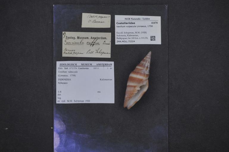 | Keywords: Naturalis Biodiversity Center - ZMA.MOLL.72324 - Vexillum vulpecula (Linnaeus, 1758) - Costellariidae - Mollusc shell.jpeg artwork Dimensions artwork Document type Costellariidae Vexillum Individual count Infraspecific epithet Infraspecific rank Institution Naturalis Kind of unit artwork Kind of unit specimen shell Life stage Indonesia Kalimantan Balikpapan; lat 0 8 lon 111 55 Medium artwork Nomenclatural code Collection remarks Moll Source institute Zoölogisch Museum Amsterdam Scale the width of the text on the species/QR-code label is 38 mm Occurrence ID page Neogastropoda Other fields Other versions artwork Permission license Naturalis donation CC-0 Mollusca Publication location Scientific name Vexillum vulpecula Linnaeus 1758 Scientific name authorship Linnaeus 1758 Source url http //bioportal naturalis nl Specific epithet vulpecula State or province Kalimantan Subject keywords artwork Subject keywords publication Title artwork Title publication Type status Uploaded with GWToolset Naturalis_Biodiversity_Center_-_ZMA MOLL 72324_-_Vexillum_vulpecula_ Linnaeus _1758 _-_Costellariidae_-_Mollusc_shell http //medialib naturalis nl/file/id/ZMA MOLL 72324/format/large Molluscs at Naturalis from the Zoölogisch Museum Amsterdam Media donated by Naturalis Biodiversity Center Vexillum vulpecula Vexillum |